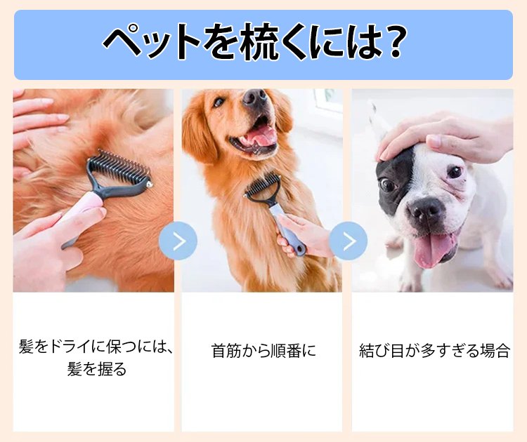 厚い髪結び除去ペット用両面ブラシ